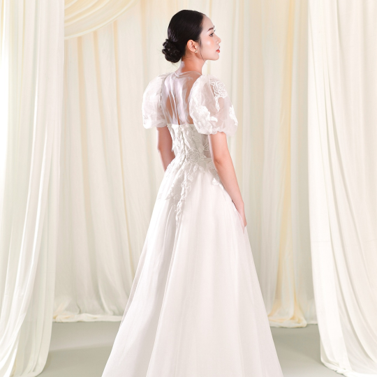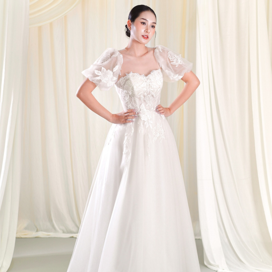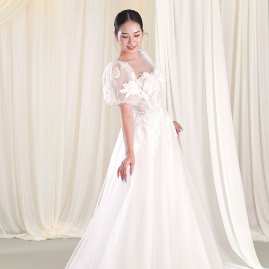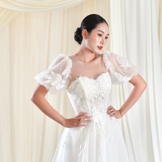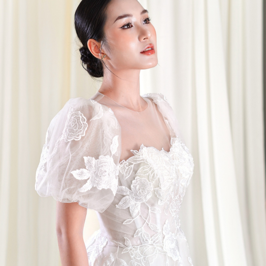 Không quá cầu kỳ trong form dáng, cũng không nặng nề trong xử lý chất liệu, Lightly Queen tôn vinh nét đẹp tự nhiên, thanh thoát của nàng dâu hiện đại. Chất liệu satin cao cấp, ren, voan và vải nhũ ánh nhẹ được chọn lọc kỹ lưỡng, giúp tạo nên vẻ ngoài mềm mại, nhẹ nhàng mà vẫn đủ để nàng nổi bật dưới ánh đèn sân khấu.