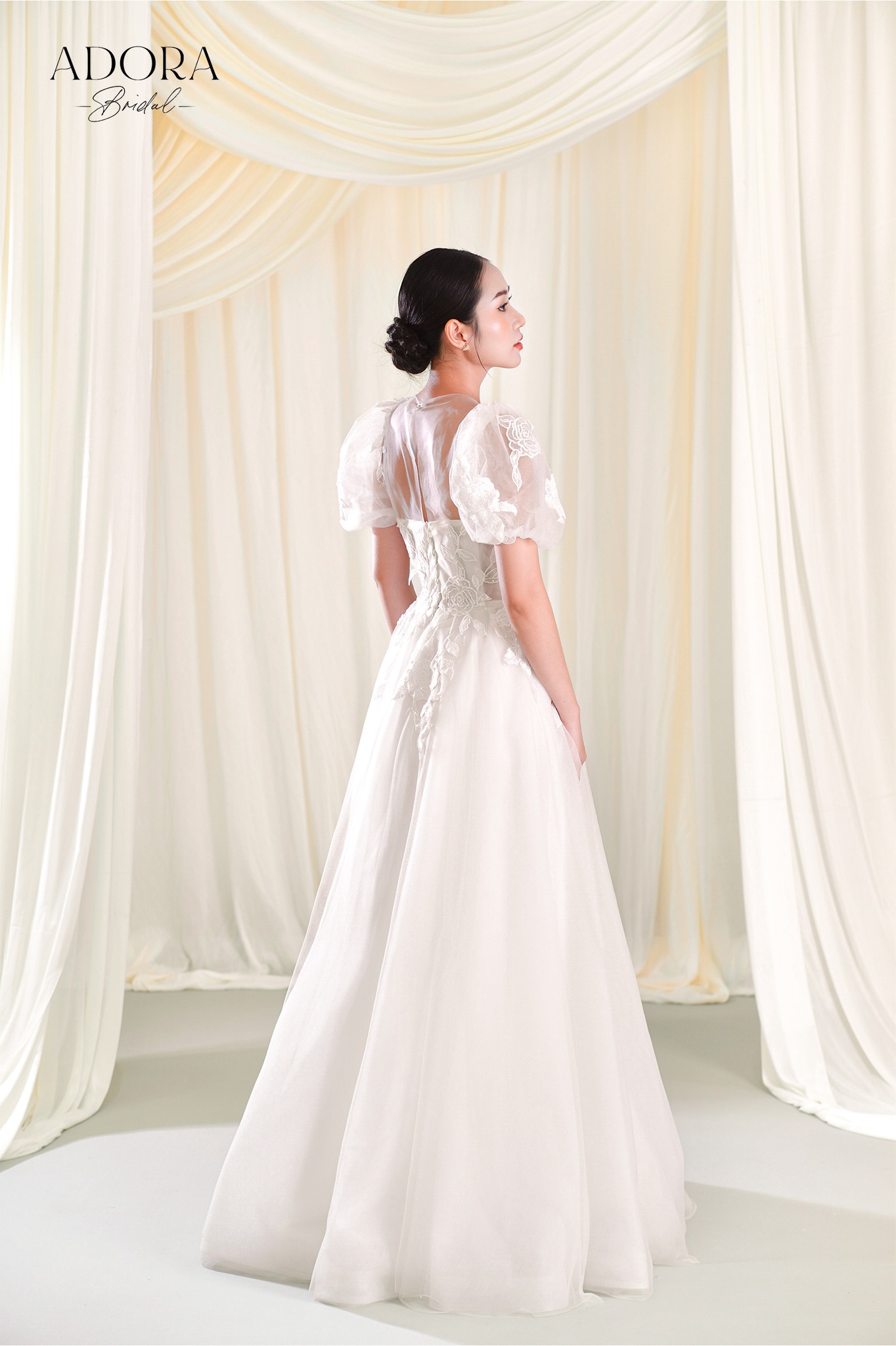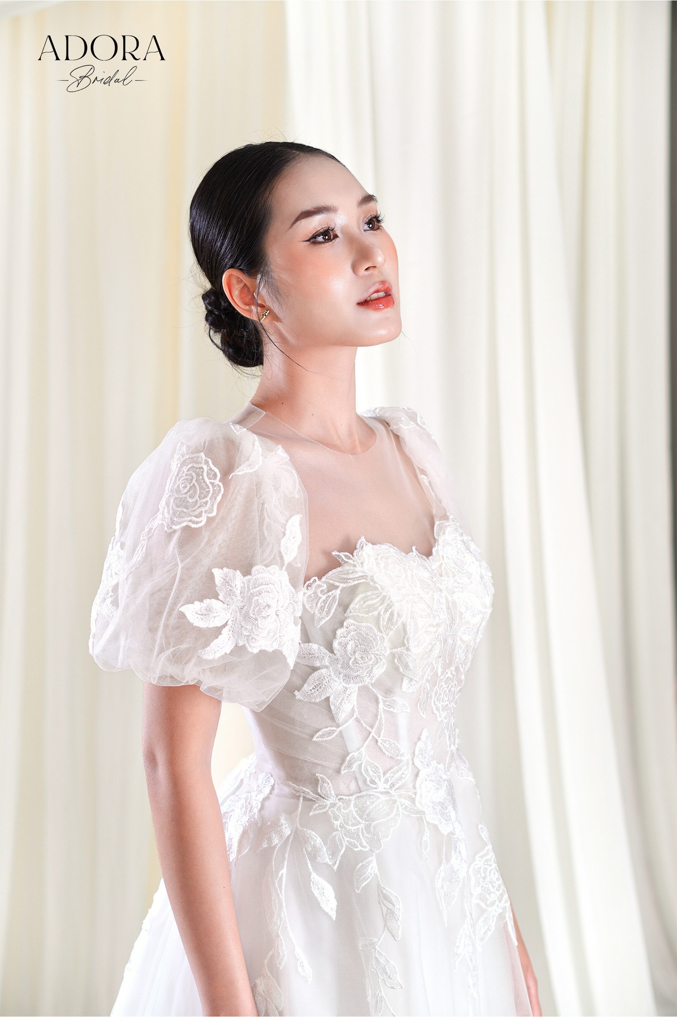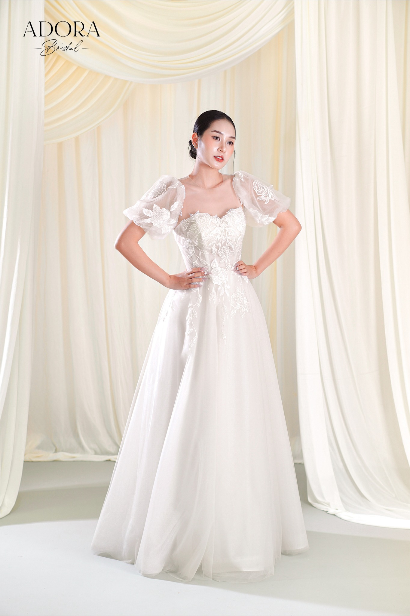 BST "Lightly Queen" là nơi để vẻ đẹp tinh giản lên ngôi, là nơi mà mỗi thiết kế được tiết chế tối đa chi tiết nhưng vẫn toát lên sự tinh tế và sang trọng đặc trưng của thương hiệu cưới ADORA Bridal.