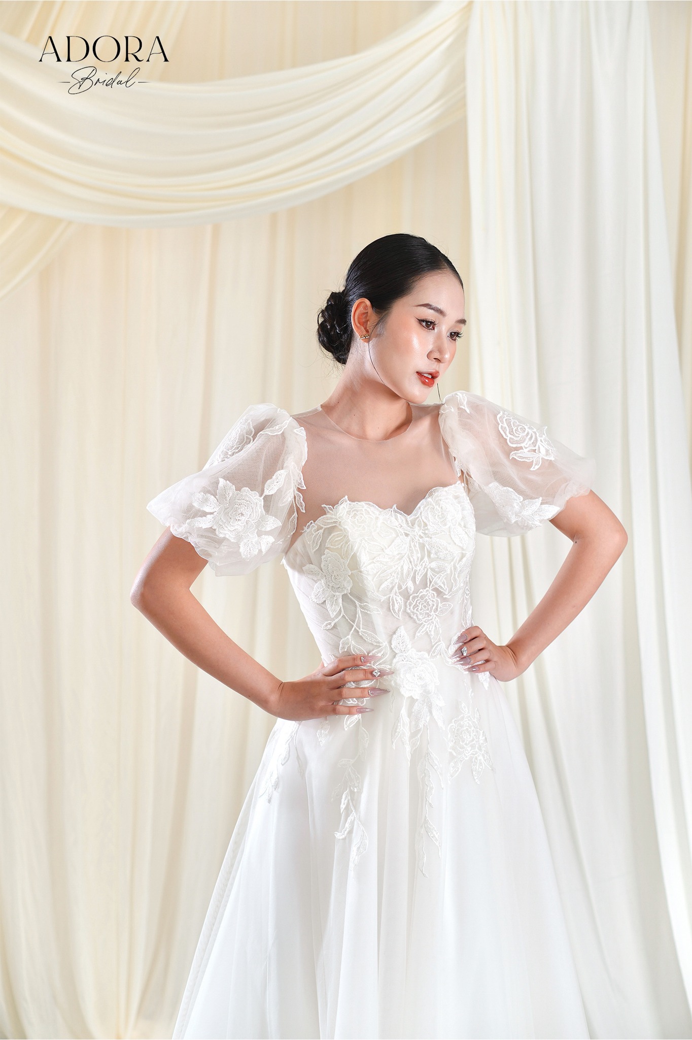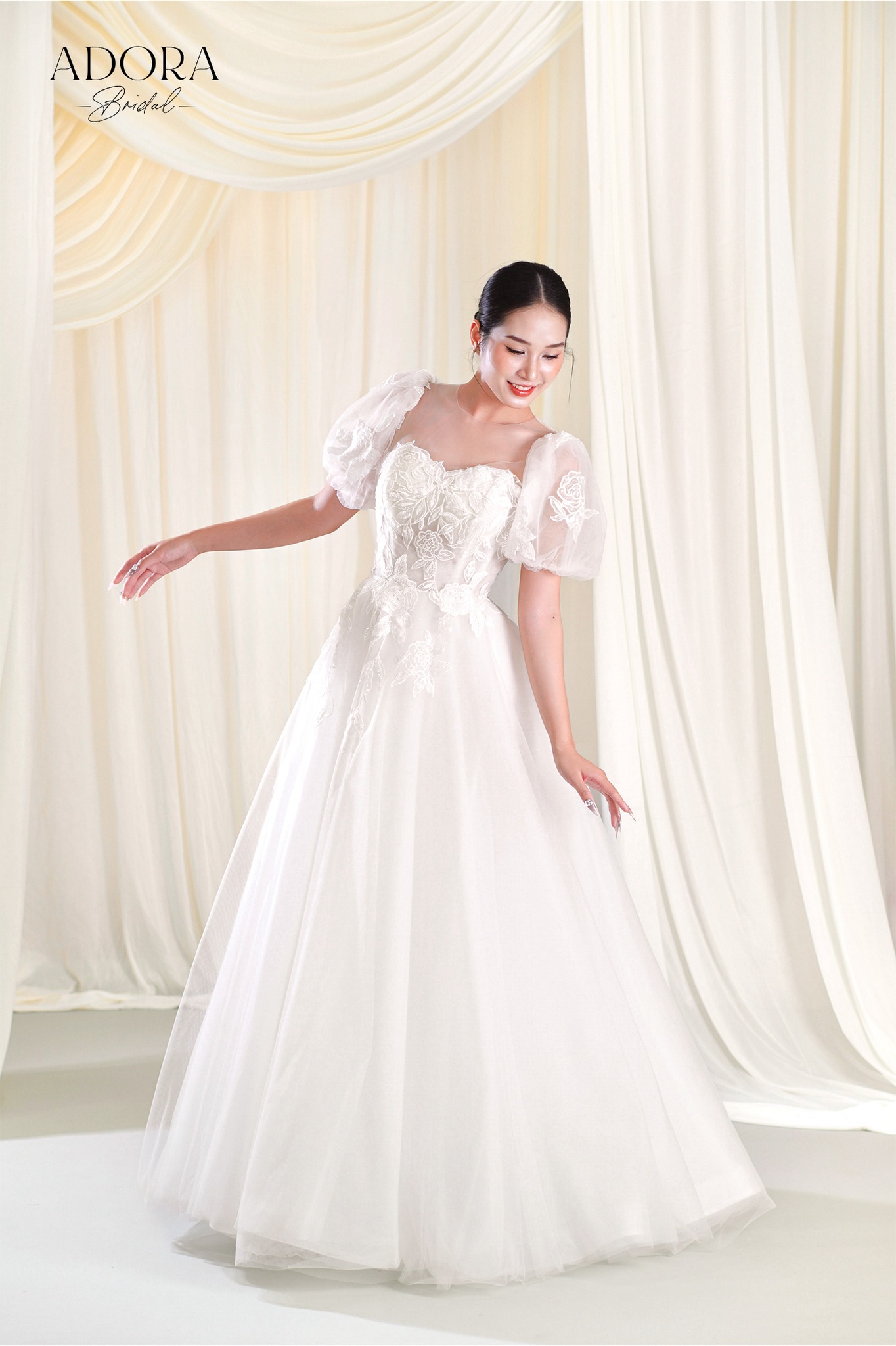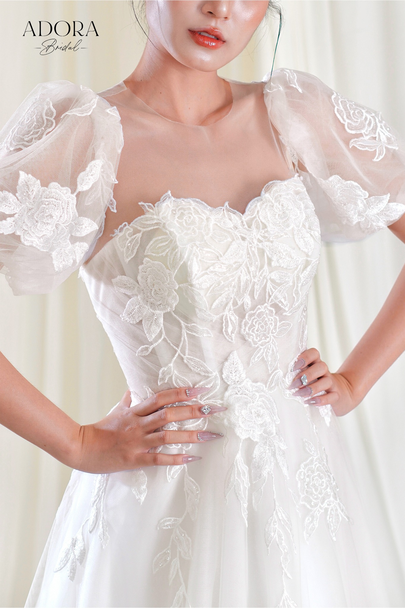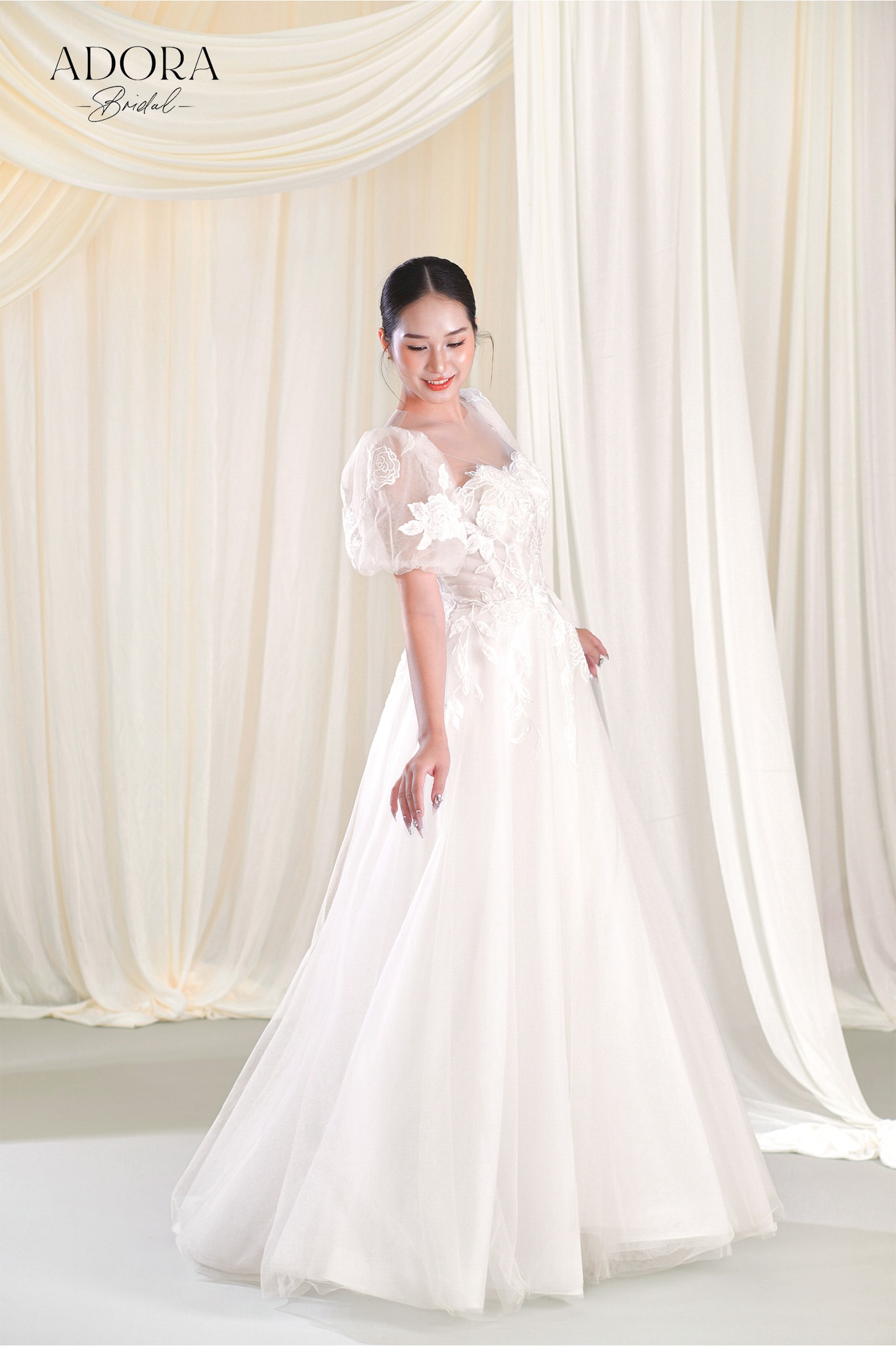 BST "Lightly Queen" là nơi để vẻ đẹp tinh giản lên ngôi, là nơi mà mỗi thiết kế được tiết chế tối đa chi tiết nhưng vẫn toát lên sự tinh tế và sang trọng đặc trưng của thương hiệu cưới ADORA Bridal.