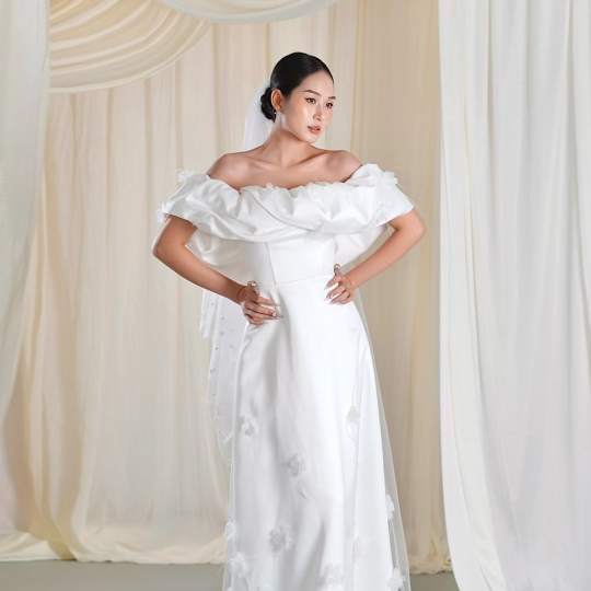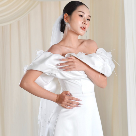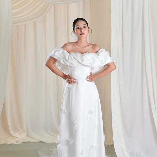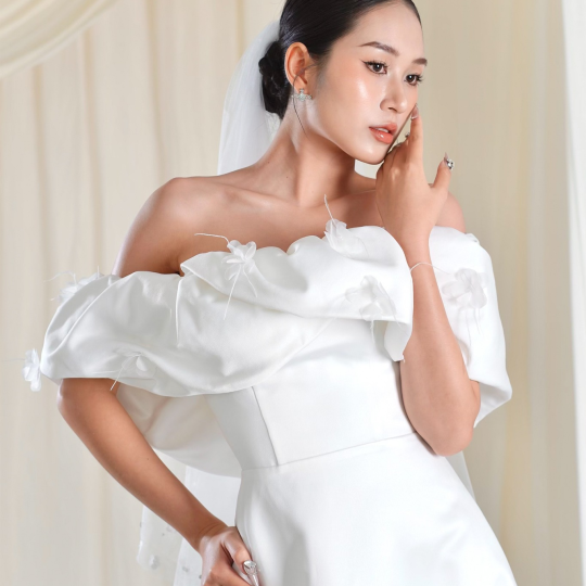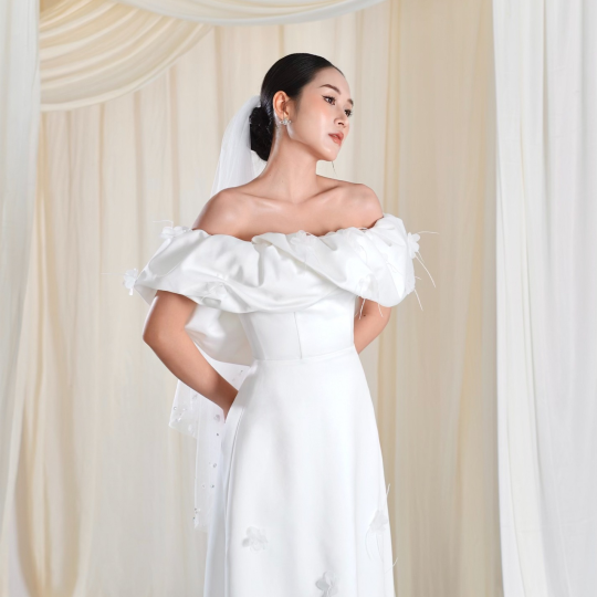 Không quá cầu kỳ trong form dáng, cũng không nặng nề trong xử lý chất liệu, Lightly Queen tôn vinh nét đẹp tự nhiên, thanh thoát của nàng dâu hiện đại. Chất liệu satin cao cấp, ren, voan và vải nhũ ánh nhẹ được chọn lọc kỹ lưỡng, giúp tạo nên vẻ ngoài mềm mại, nhẹ nhàng mà vẫn đủ để nàng nổi bật dưới ánh đèn sân khấu.