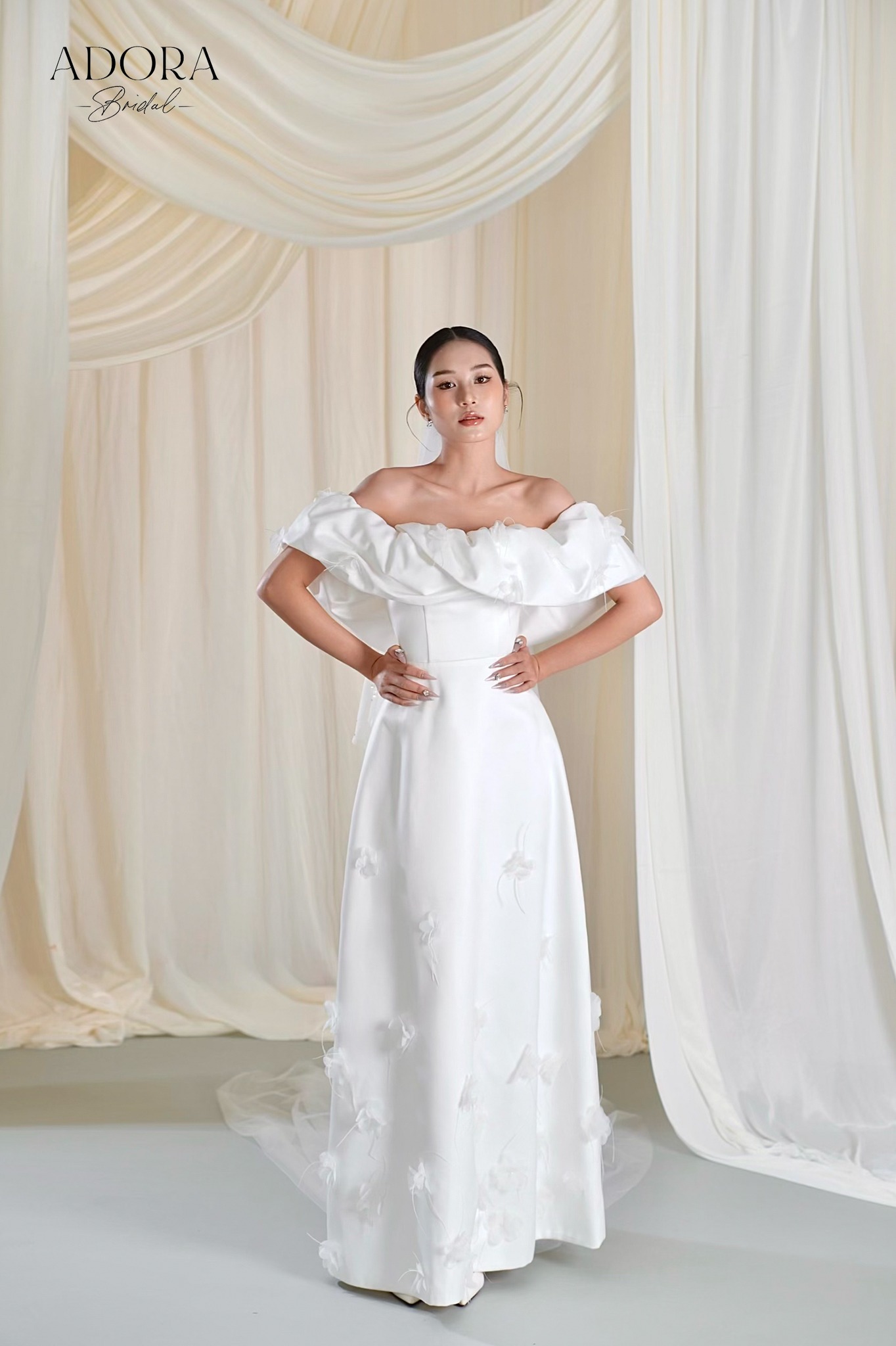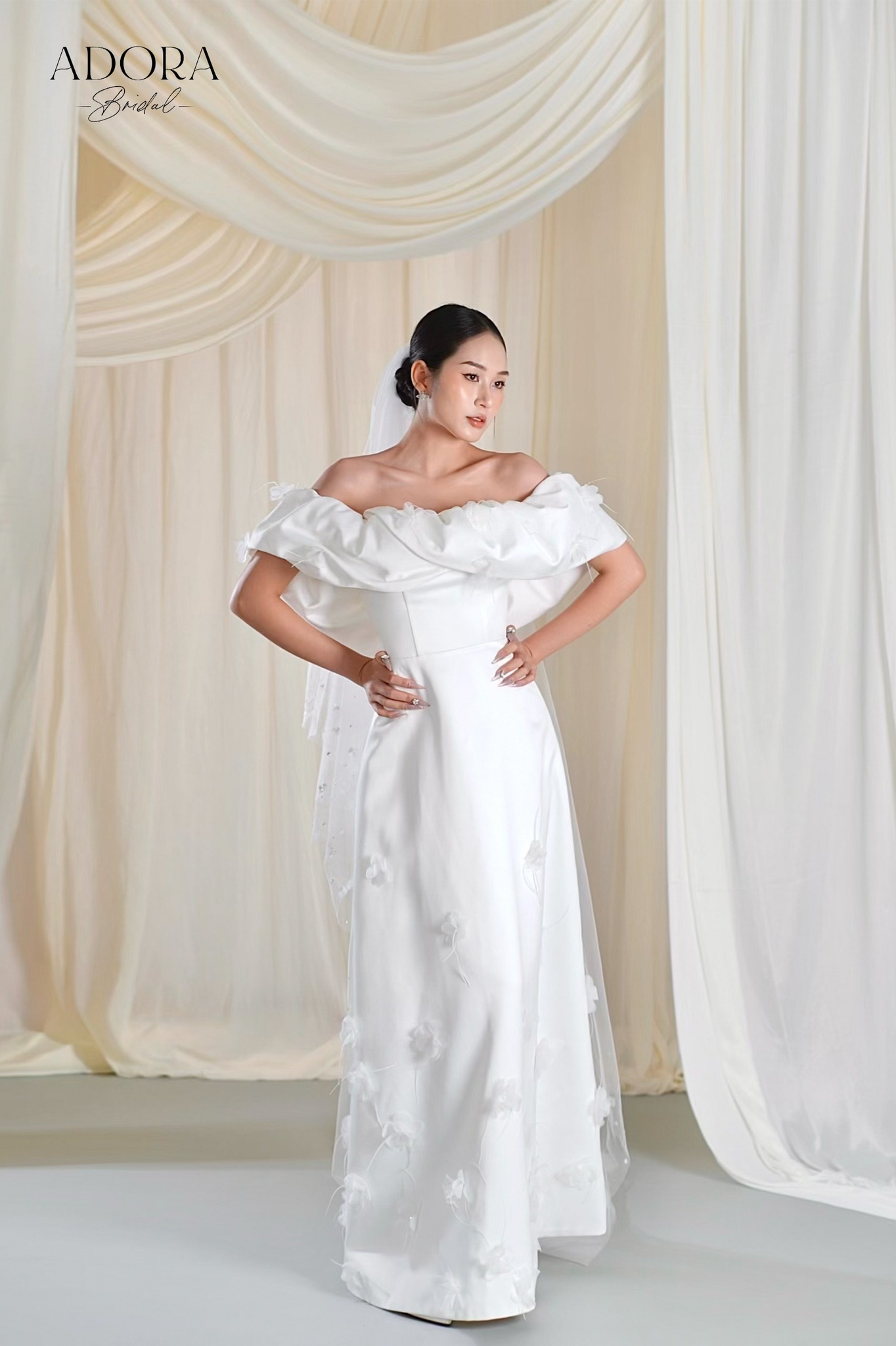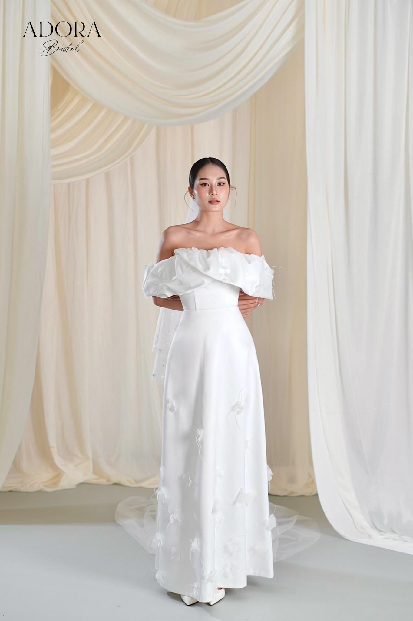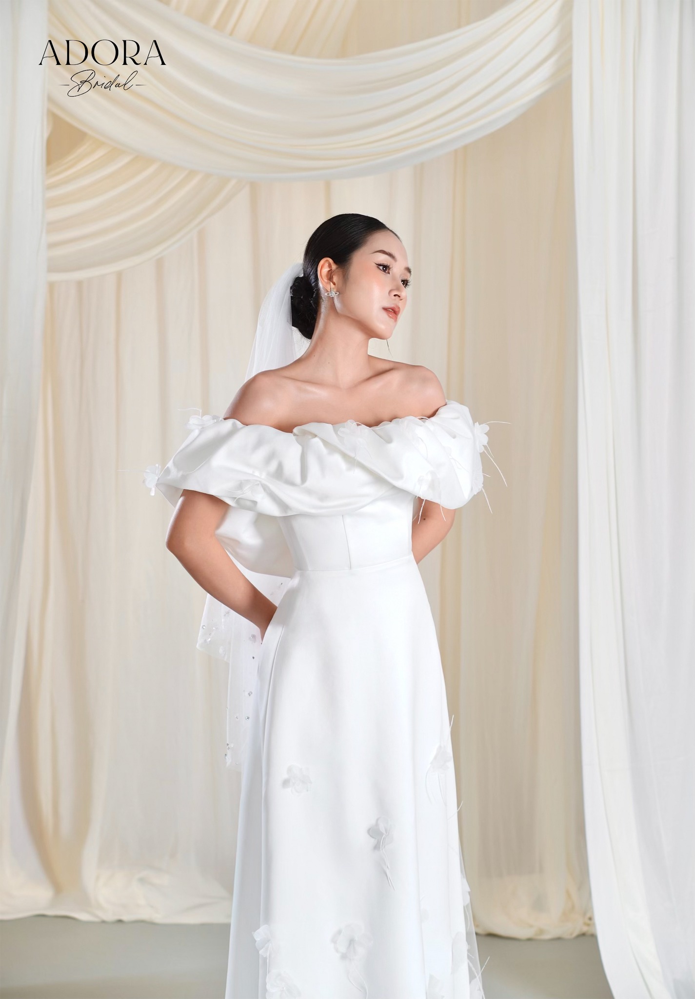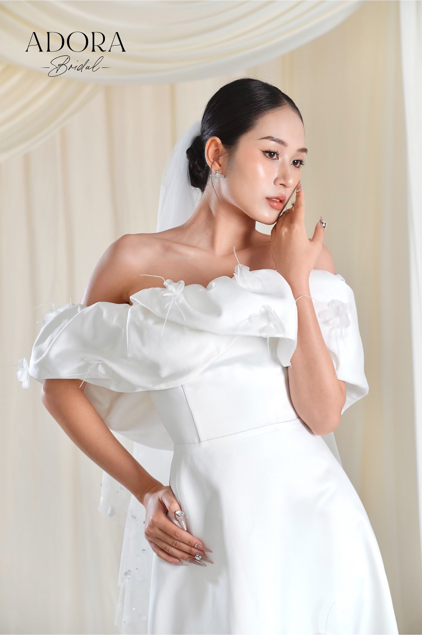 BST "Lightly Queen" là nơi để vẻ đẹp tinh giản lên ngôi, là nơi mà mỗi thiết kế được tiết chế tối đa chi tiết nhưng vẫn toát lên sự tinh tế và sang trọng đặc trưng của thương hiệu cưới ADORA Bridal.